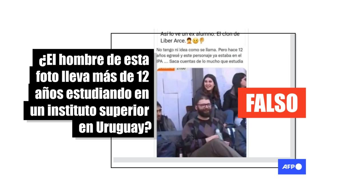 “No tengo idea como se llama. Pero hace 12 años egresé y este personaje ya estaba en el IPA … . Saca cuentas de lo mucho que estudia”, señala la captura de pantalla compartida por Graciela Bianchi, junto a la foto que muestra a un hombre sentado, con lentes, barba y un jersey con rombos, rodeado de otras personas.