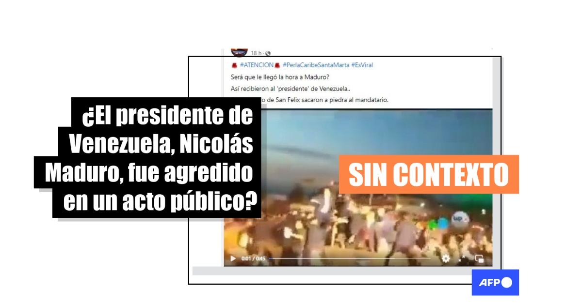 En la grabación, que también circula en Twitter (1, 2), TikTok y YouTube y sitios web, una periodista informa que una multitud le arrojó objetos al mandatario durante un evento público en San Félix, una localidad ubicada en el estado venezolano de Bolívar (este).