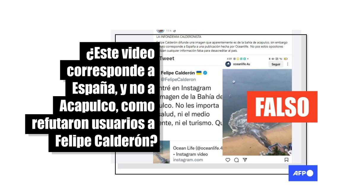 Un video compartido por el expresidente mexicano Felipe Calderón en Twitter muestra una descarga de aguas residuales en Acapulco, no en España como afirman publicaciones difundidas decenas de veces en redes sociales desde el 28 de agosto de 2022. El video difundido por el exmandatario, grabado en realidad en 2020, fue tomado en la ciudad costera mexicana, así lo demuestran algunos elementos que se ven en él.