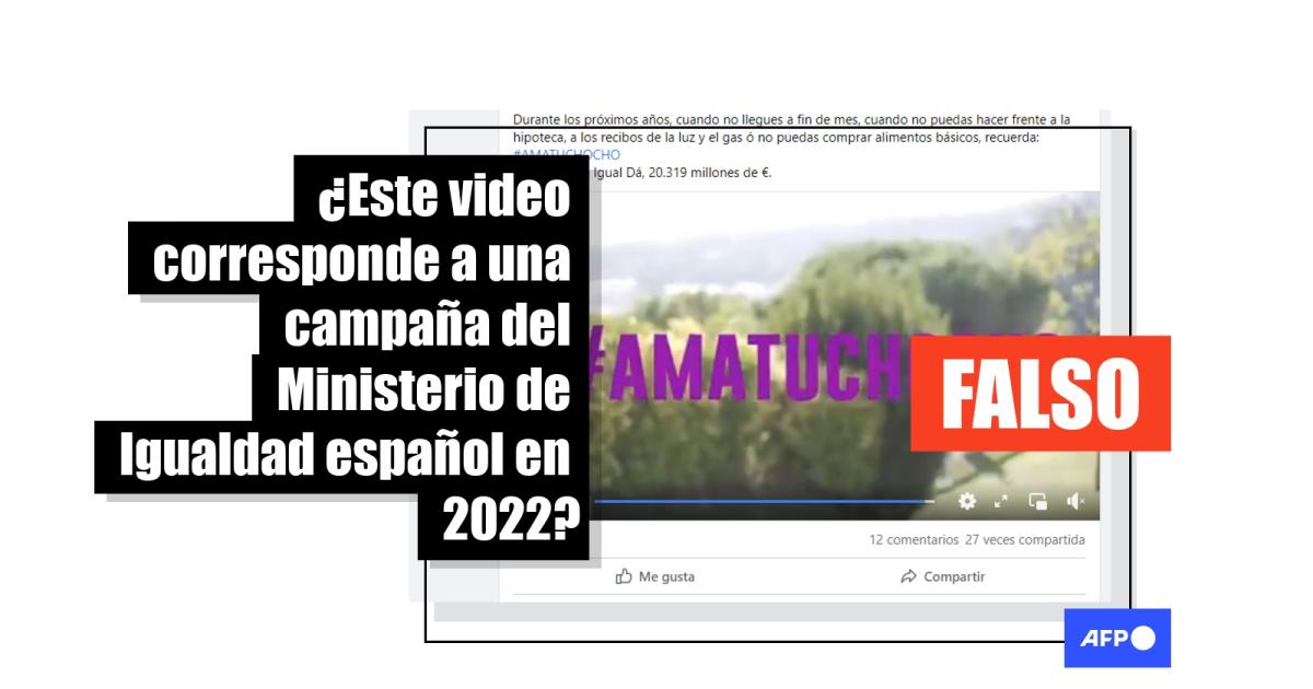 Contactado por la AFP, el gabinete de prensa del Ministerio de Igualdad aseguró que es “totalmente falso” que el video forme parte de una campaña de esa entidad.