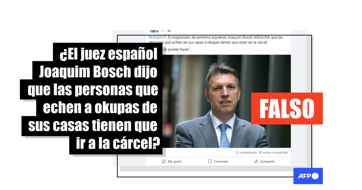 “#URGENTE El magistrado de extrema izquierda Joaquim Bosch ASEGURA que las personas que echen de sus casas a okupas tienen que estar en la cárcel. ‘Eso NO se puede hacer’”, dice el mensaje, retuiteado más de 1.300 veces y compartido decenas de veces en Facebook como captura de pantalla (1, 2). Contenido similar también circula en Twitter.