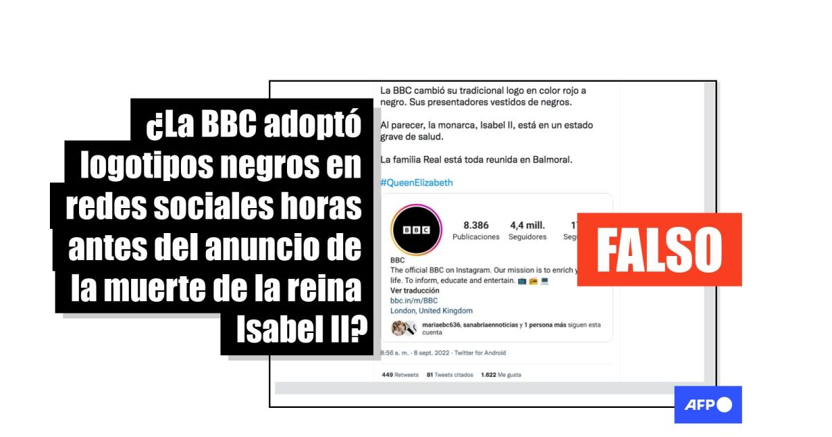 Por otra parte, el logotipo de la BBC ya era color negro en Twitter al menos desde el 10 de abril de 2021, un día después de la muerte del príncipe Felipe, esposo de la reina Isabel II. El 4 de septiembre, la imagen de perfil de la cadena seguía siendo de ese tono.