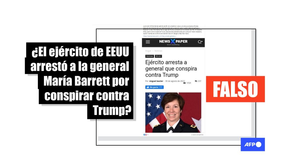 Una búsqueda en el sitio web del Departamento de Defensa con las palabras “General Barrett arrestada” en inglés no arrojó resultados. El supuesto hecho tampoco aparece en el portal del Comando Cibernético del Ejército estadounidense ni en medios de comunicación.