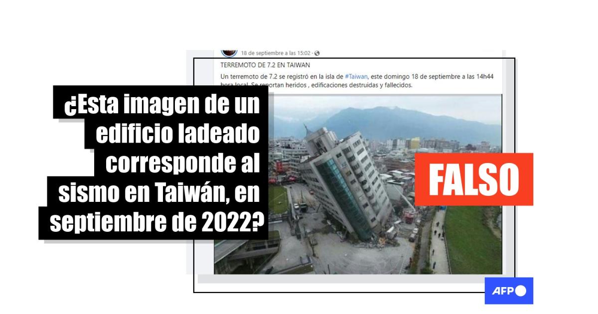 Esta foto muestra un edificio inclinado tras ser afectado por un sismo en Taiwán en 2018, no 2022