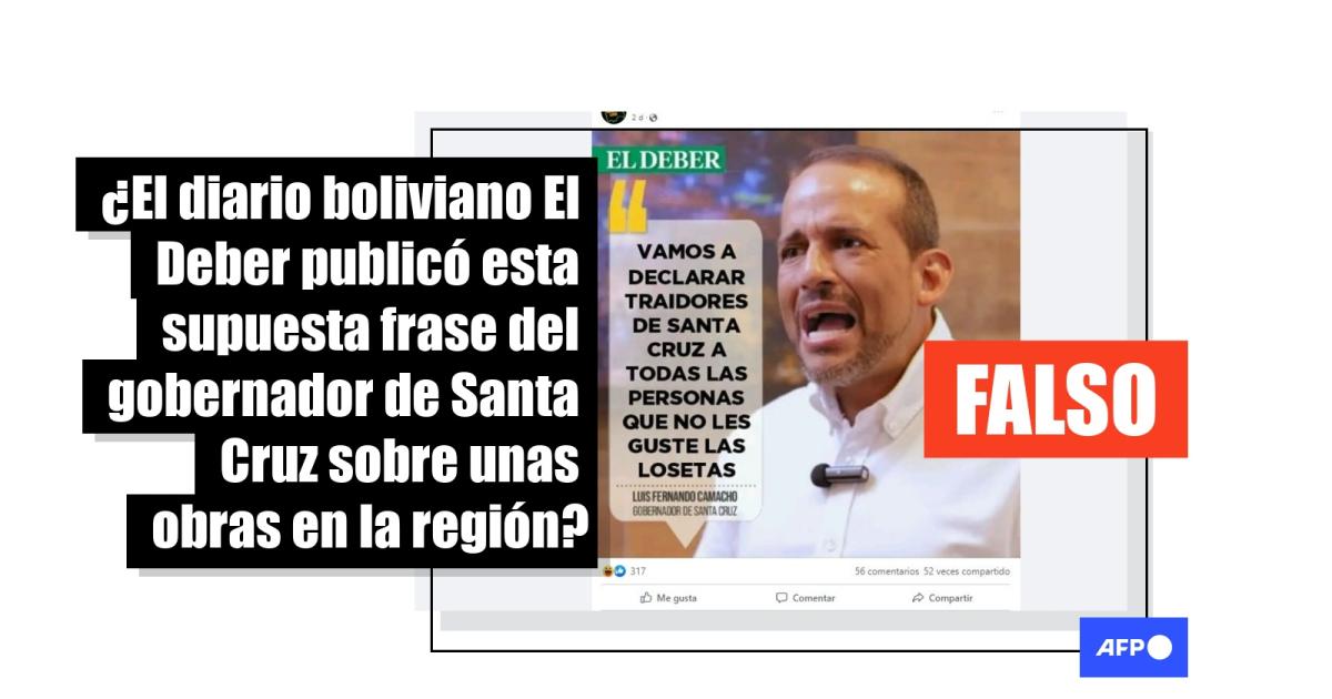 El diario boliviano El Deber no publicó esta supuesta cita de Camacho sobre obras en su región
