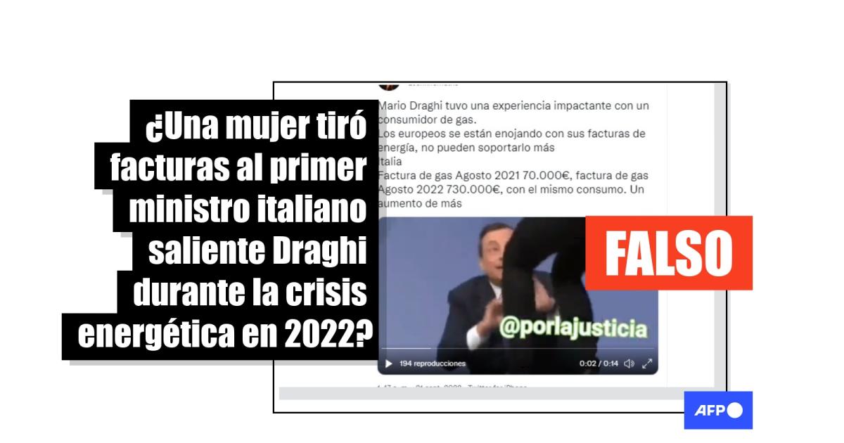 Sin embargo, las afirmaciones viralizadas son falsas. Si bien la grabación muestra una protesta dirigida a Draghi, esta no es reciente y no tiene nada que ver con la crisis energética que enfrenta Europa en el segundo semestre de 2022.