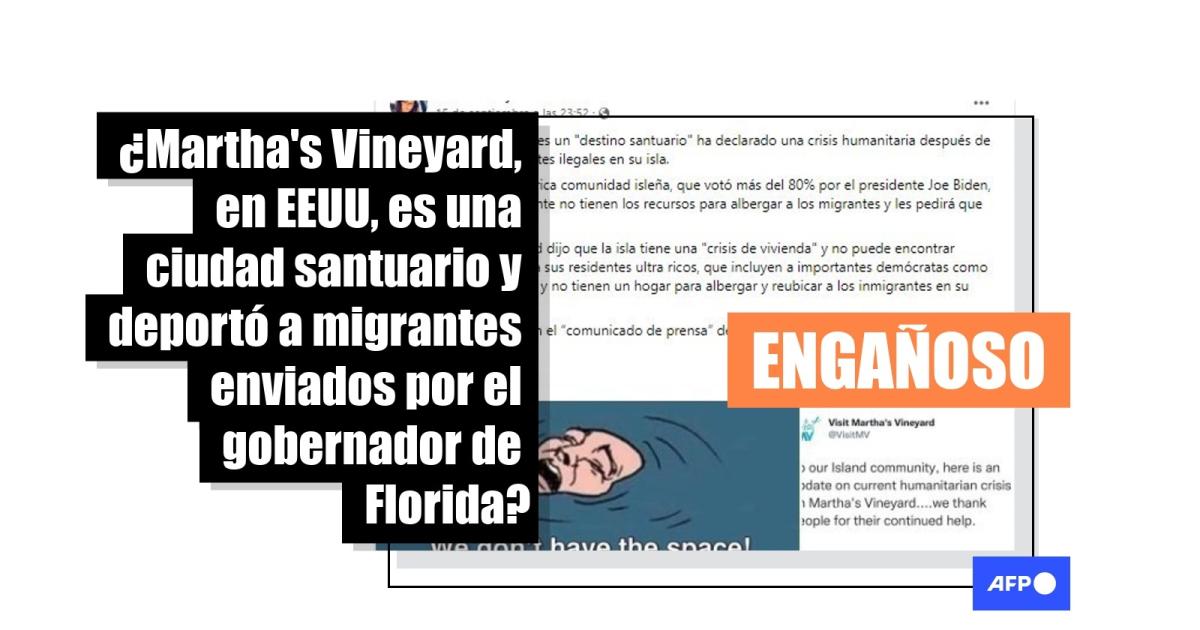 “Martha's Vineyard, que es un ‘destino santuario’ ha declarado una crisis humanitaria después de recibir solo 50 inmigrantes ilegales en su isla”, asegura una entrada publicada en Facebook (1). Otra publicación en la misma red social dice: “El viernes, menos de 36 horas después, la isla santuario de Martha's Vineyard DEPORTÓ a los inmigrantes ilegales en autobuses”.