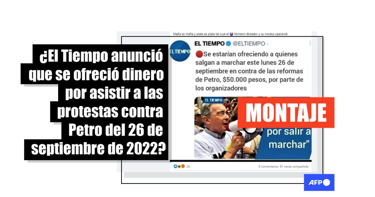 Es falso el tuit de El Tiempo que dice que se ofreció dinero por protestar contra Petro en Colombia