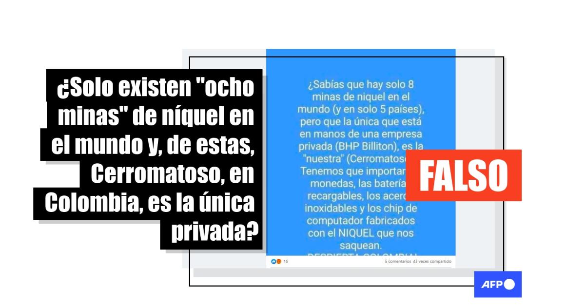 El 28 de septiembre de 2022, Nickel Institute, la asociación mundial de los principales productores primarios de ese mineral, informó a la AFP que “definitivamente hay más de ocho minas de níquel” , contrario a lo que indican las entradas viralizadas.
