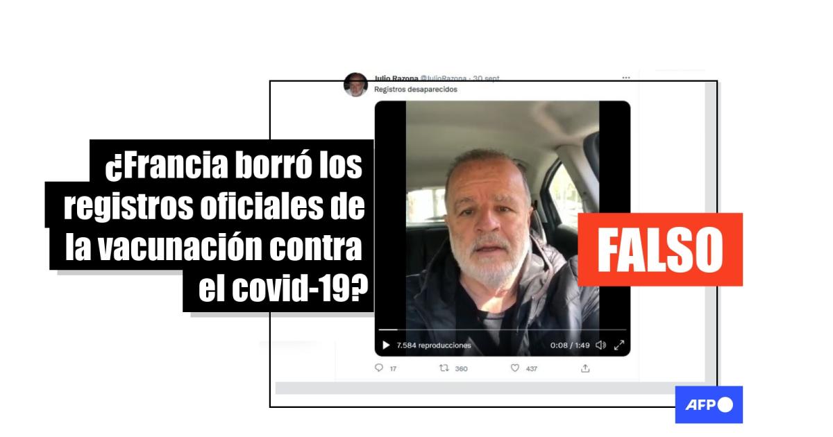 “Me acaban de certificar desde Francia que se están borrando de todos los sistemas oficiales las constancias de vacunación de covid-19”, dice el abogado argentino Julio Razona en un video que circula en Twitter, Telegram, Instagram y Facebook.