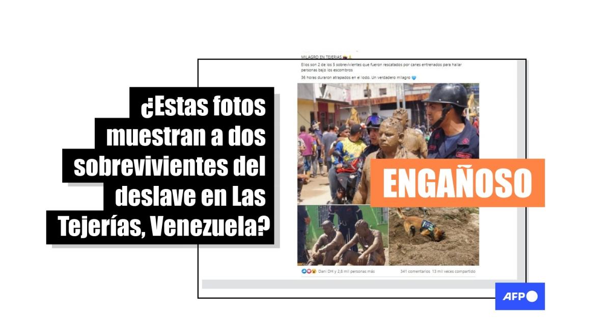 Así mismo, la corresponsal de la AFP en Venezuela, explicó que, según informaron rescatistas que atienden la emergencia en Las Tejerías, los hombres de las fotografías eran dos socorristas voluntarios que fueron picados por abejas y que se cubrieron de lodo en medio del ataque.