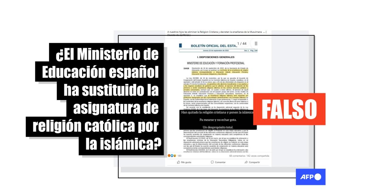 Contactado por AFP Factual, el gabinete de prensa del Ministerio de Educación español aseguró que “no es cierto” que se haya eliminado la asignatura de religión católica. Responsables de dicha cartera aclararon que el extracto del BOE es un “currículo”, es decir, un recurso pedagógico del que disponen los docentes que precisa los contenidos, materiales y recursos que deben ser presentados y abordados en las instituciones educativas en todos los niveles establecidos. Estos currículos se actualizan cuando entra en vigor una modificación de la Ley de Educación.