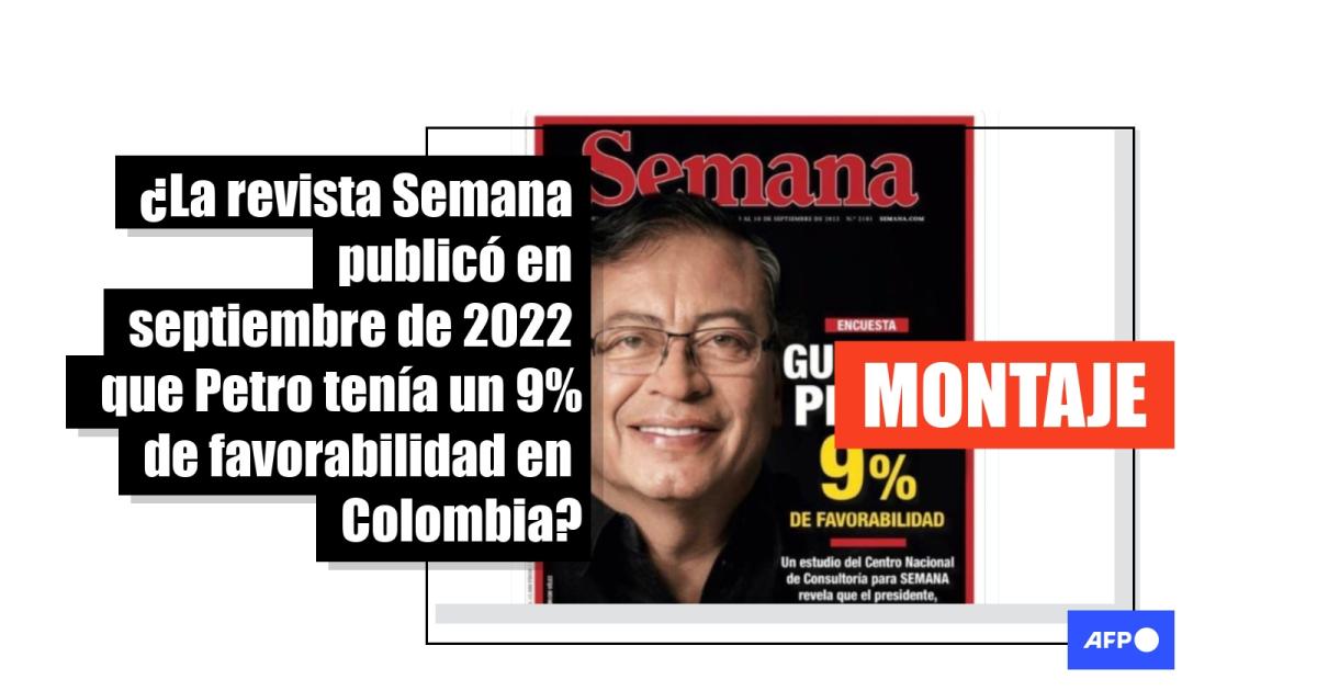 Una búsqueda inversa en Google con la carátula viralizada permitió encontrar un artículo del 3 de septiembre de 2022 en el sitio web de Semana, titulado "Presidente Gustavo Petro llega al 69 por ciento de favorabilidad; SEMANA revela encuesta del Centro Nacional de Consultoría".