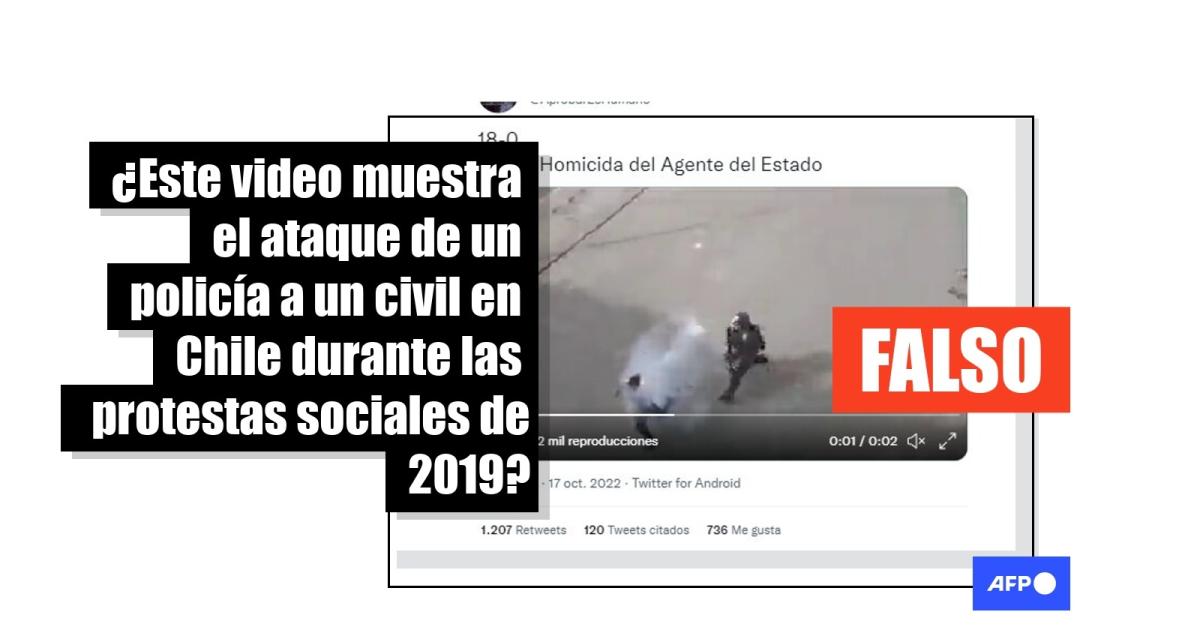 Este video no muestra ataque de un policía chileno a un civil en 2019; es de protestas en Colombia
