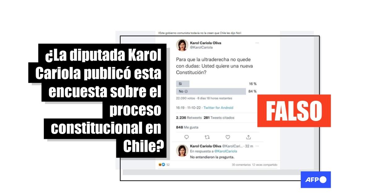 La diputada Karol Cariola no publicó este supuesto sondeo sobre una nueva Constitución en Chile