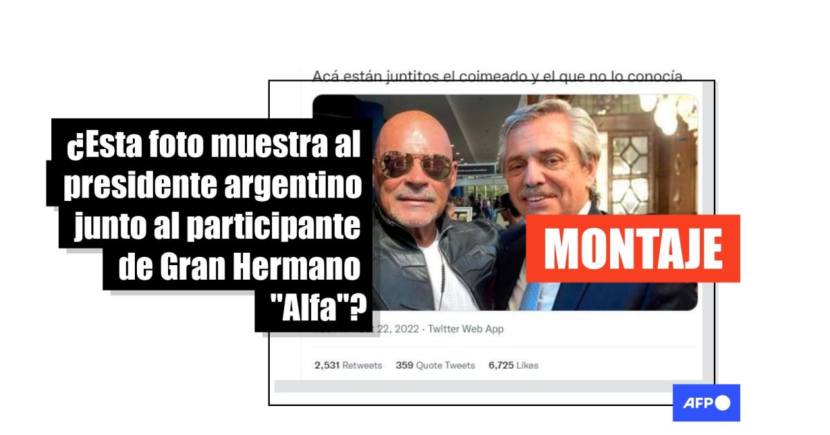 Foto del presidente argentino, Alberto Fernández, junto a “Alfa”, de Gran Hermano, es un montaje
