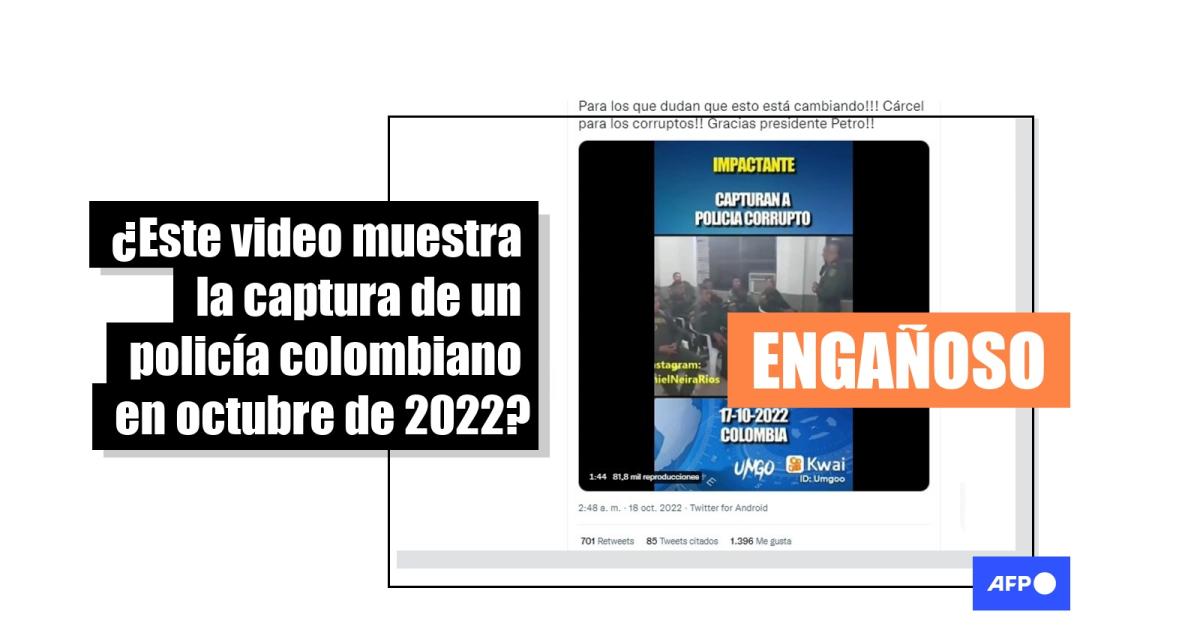 Este video muestra una dramatización, no el arresto de un policía en Colombia en 2022
