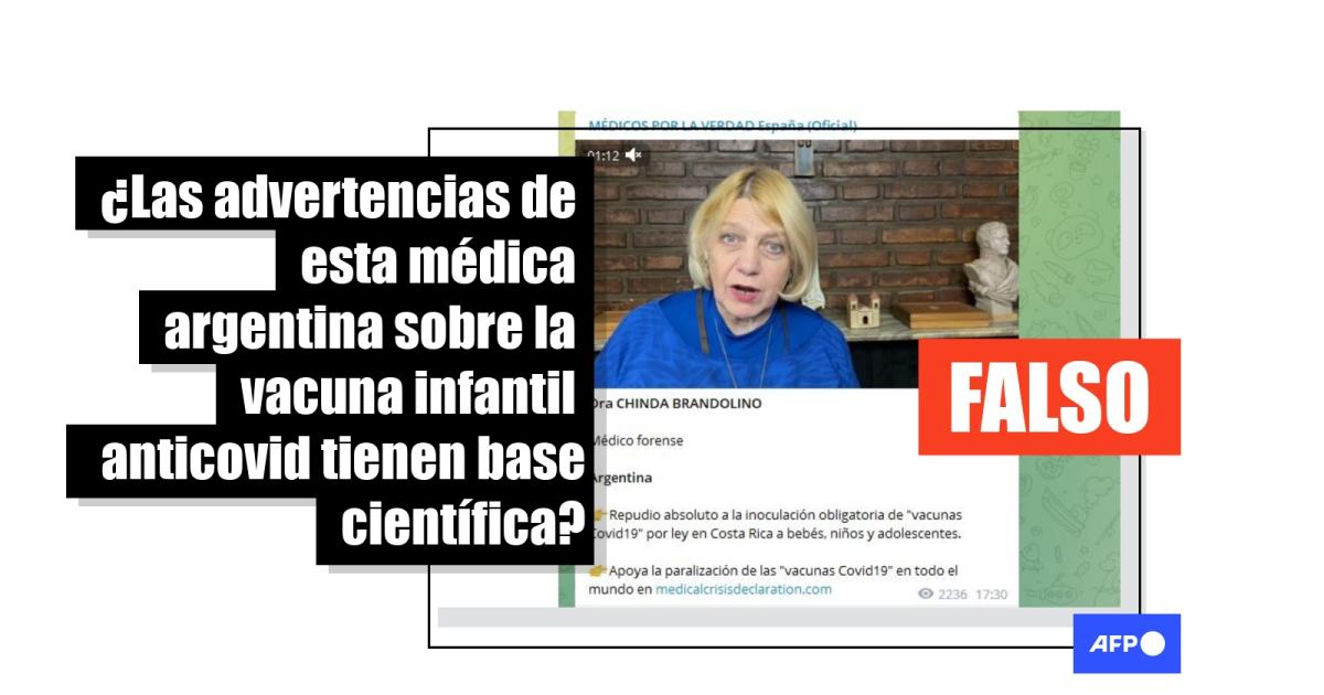 “Hago este video para repudiar totalmente la decisión del comité de vacunología de Costa Rica que ha decidido obligar a los papás a vacunar a los niños de cinco o seis meses en adelante con la vacuna covid. Es una locura y es un genocidio deliberado”, dice Chinda Brandolino en un video que circula en Facebook, Twitter, Telegram y TikTok.