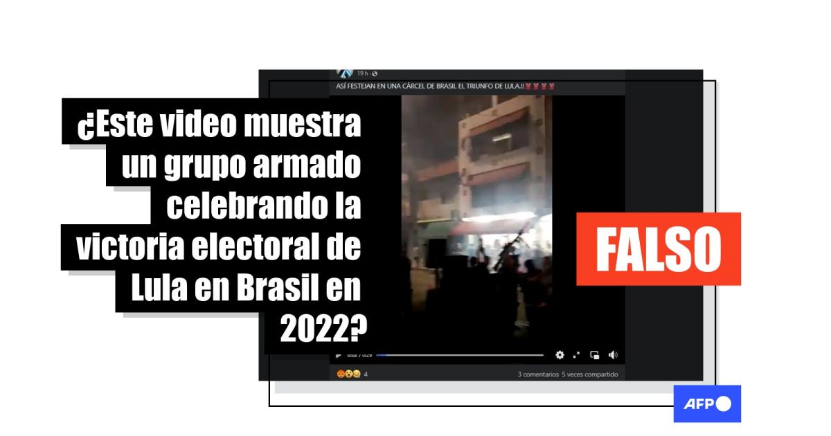 “ASÍ SE FESTEJO EN LAS FAVELAS DE BRASIL TRAS CONOCERSE COMO GANADOR A LULA DA SILVA”, dice una de las publicaciones en Facebook que difunden un video de personas disparando armas de fuego al aire en lo que parece ser una fiesta sobre una calle. En el fondo se escucha música y gritos, asi como fuegos artificiales.