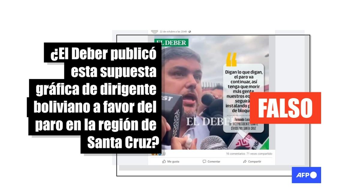 Mónica Salvatierra, jefa de redacción de El Deber, dijo a AFP Factual que la imagen viral no fue publicada por el diario.