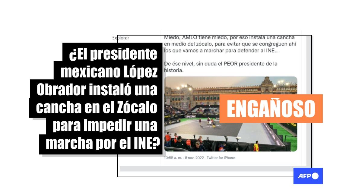“Miedo, AMLO tiene miedo, por eso instala una cancha en medio del zócalo, para evitar que se congreguen ahí los que vamos a marchar para defender al INE… De ése nivel, sin duda el PEOR presidente de la historia”, dicen las publicaciones en Twitter (1, 2) y Facebook (1, 2, 3).