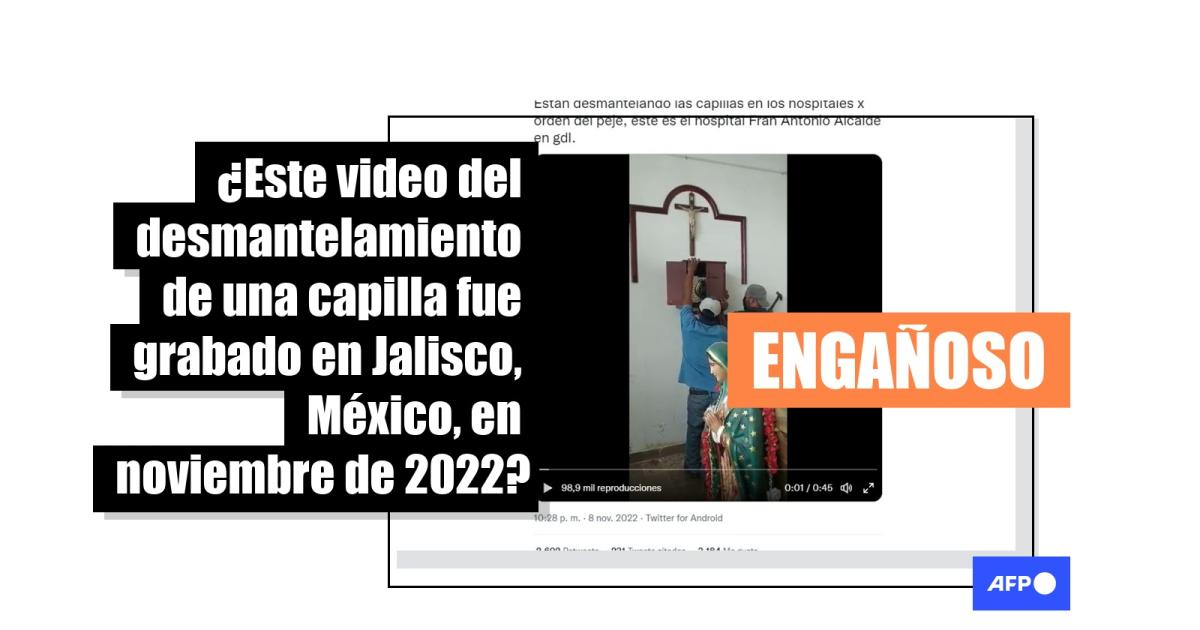 “Autoridades del Hospital Civil de Guadalajara desmintieron la veracidad de un video viralizado en redes sociales desde ayer martes 08 de noviembre por la noche, donde se observa el desmantelamiento de una capilla de oración, con el señalamiento falso de que las imágenes corresponderían al oratorio del Antiguo Hospital Civil de Guadalajara ‘Fray Antonio Alcalde’, información que no corresponde a la realidad”, indica el comunicado del 9 de noviembre de 2022.