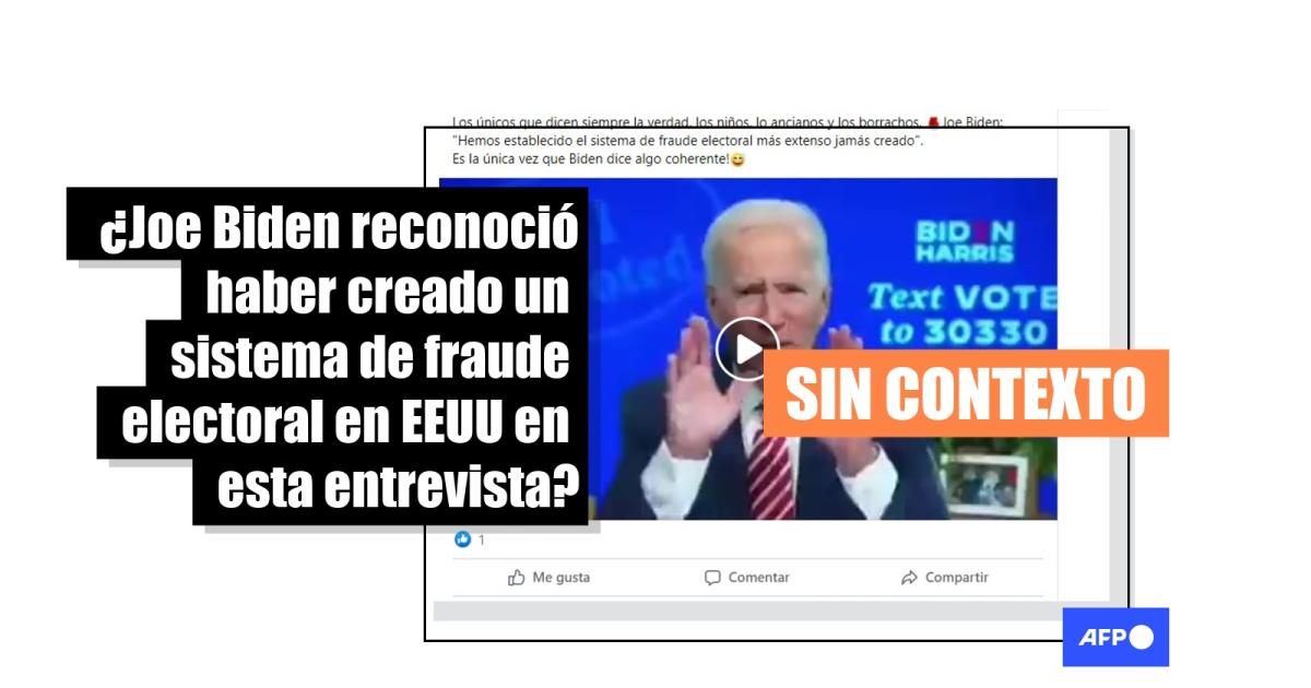 “Los únicos que dicen siempre la verdad, los niños, lo ancianos y los borrachos, Joe Biden: ‘Hemos establecido el sistema de fraude electoral más extenso jamás creado’. Es la única vez que Biden dice algo coherente!”, señalan entradas en Facebook (1, 2) y Twitter que difunden parte de la entrevista, también viralizada en 2020.