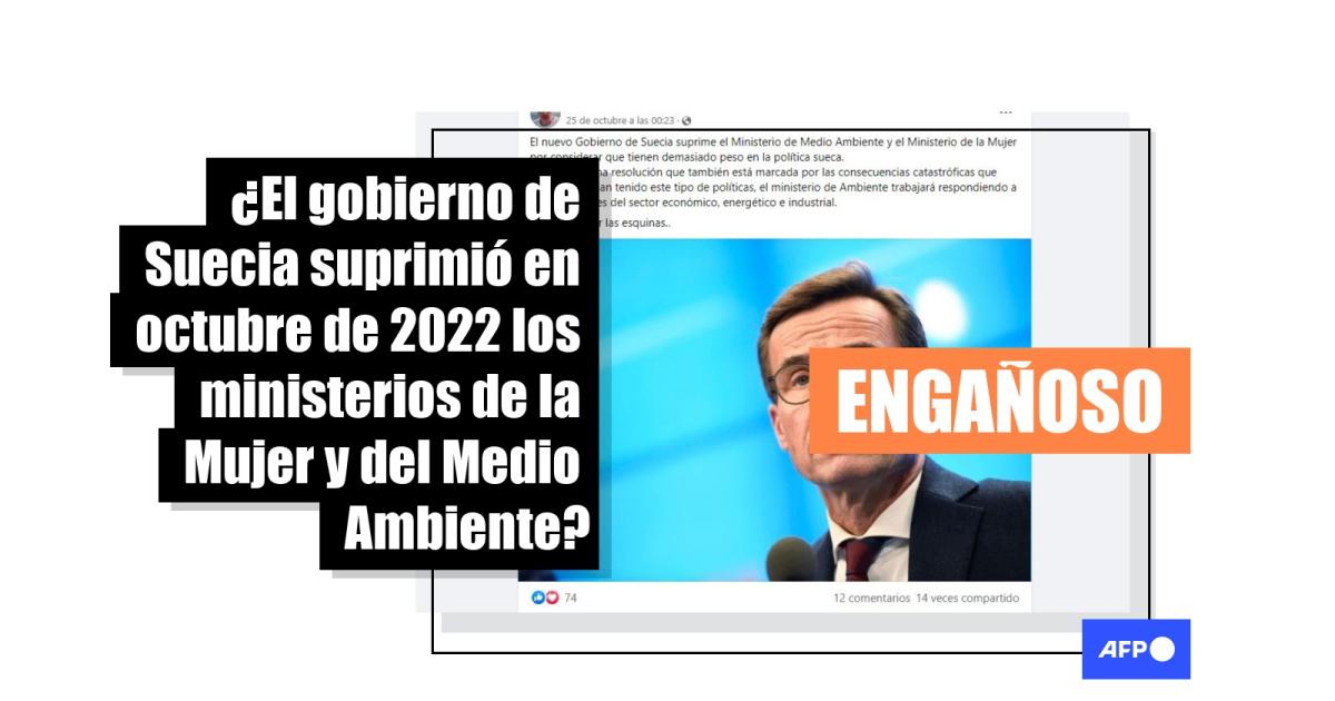 "El nuevo Gobierno de Suecia suprime el Ministerio de Medio Ambiente y el Ministerio de la Mujer", señalan publicaciones compartidas cientos de veces al menos desde el 22 de octubre de 2022 en Facebook y Twitter, sobre una supuesta reestructuración del gabinete del primer ministro sueco, Ulf Kristersson.