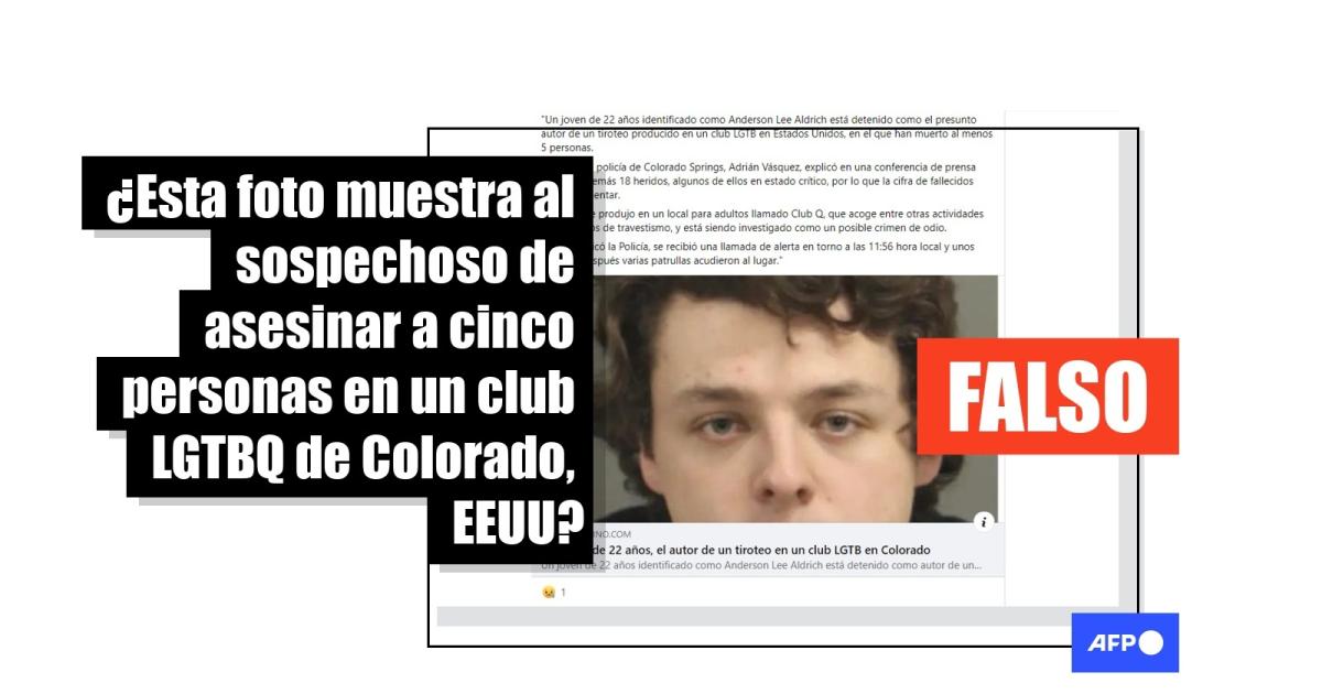 “Un joven de 22 años identificado como Anderson Lee Aldrich está detenido como el presunto autor de un tiroteo producido en un club LGTB en Estados Unidos, en el que han muerto al menos 5 personas”, señalan entradas en Facebook e Instagram que difunden la foto de un joven.