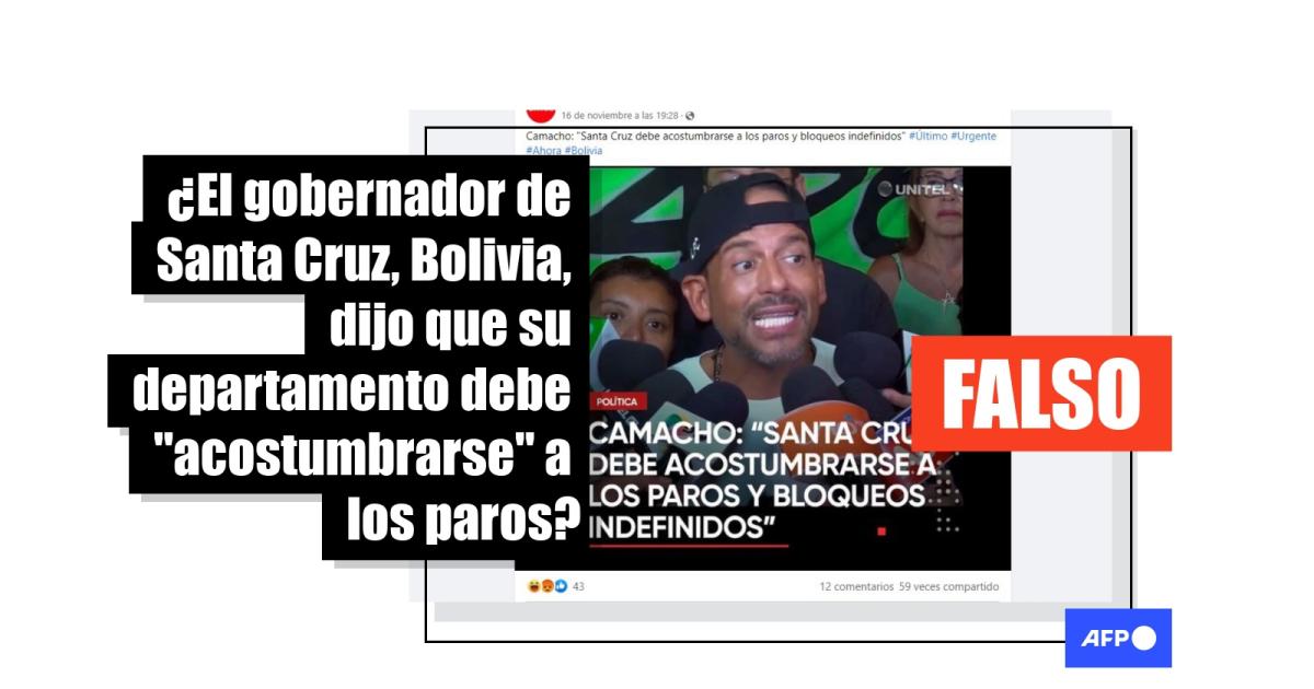 El equipo de prensa de Camacho dijo a la AFP que la supuesta cita atribuida al gobernador “es falsa”.