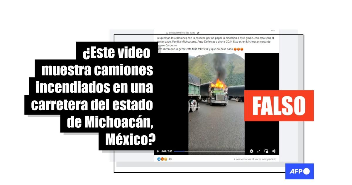 Este video de camiones incendiados en una carretera fue grabado en Colombia, no en México