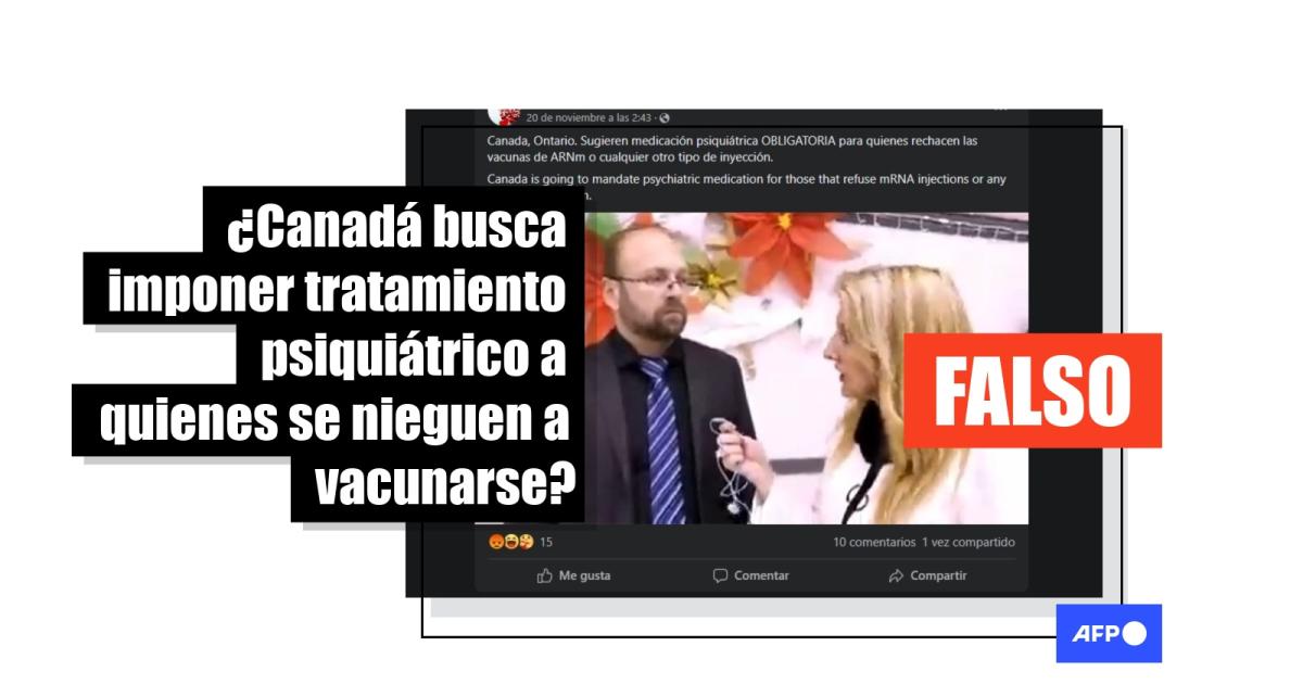 Consultado también sobre la supuesta imposición de tratamiento psiquiátrico a los no vacunados, el Ministerio de Salud de Canadá negó esta acusación. "Son falsedades", dijo a la AFP el pasado 24 de noviembre.