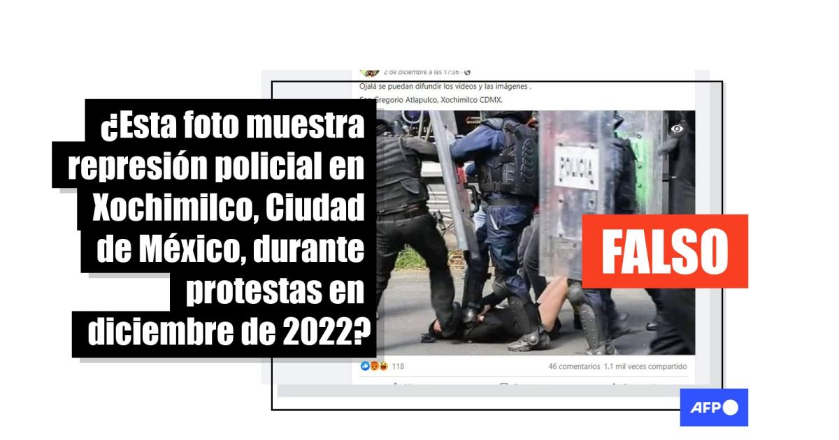 Esta foto de agresión policial no es de una protesta en Xochimilco, México, en diciembre de 2022
