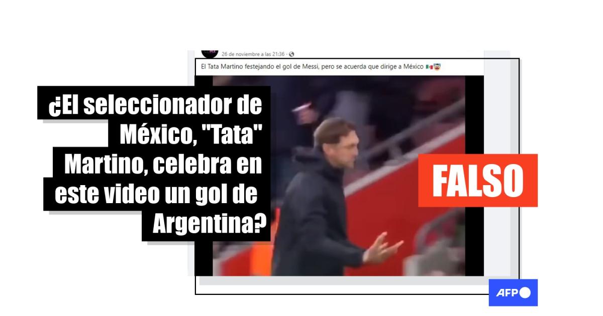 “Gol de Messi, celebra el Tata Martino. Luego se recuerda que dirige a México”, señalan entradas en Facebook (1, 2) y Twitter. Algunos de los videos compartidos en las publicaciones van acompañados de una marca de un usuario en TikTok que difundió las imágenes el 26 de noviembre de 2022.