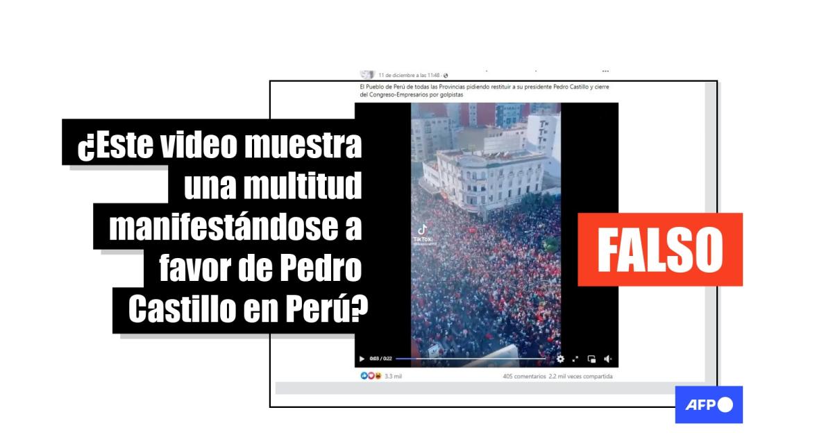 “El Pueblo de Perú de todas las Provincias pidiendo restituir a su presidente Pedro Castillo y cierre del Congreso-Empresarios por golpistas”, se lee en publicaciones en Facebook y Twitter junto a un video de una multitud agrupada en una ciudad.