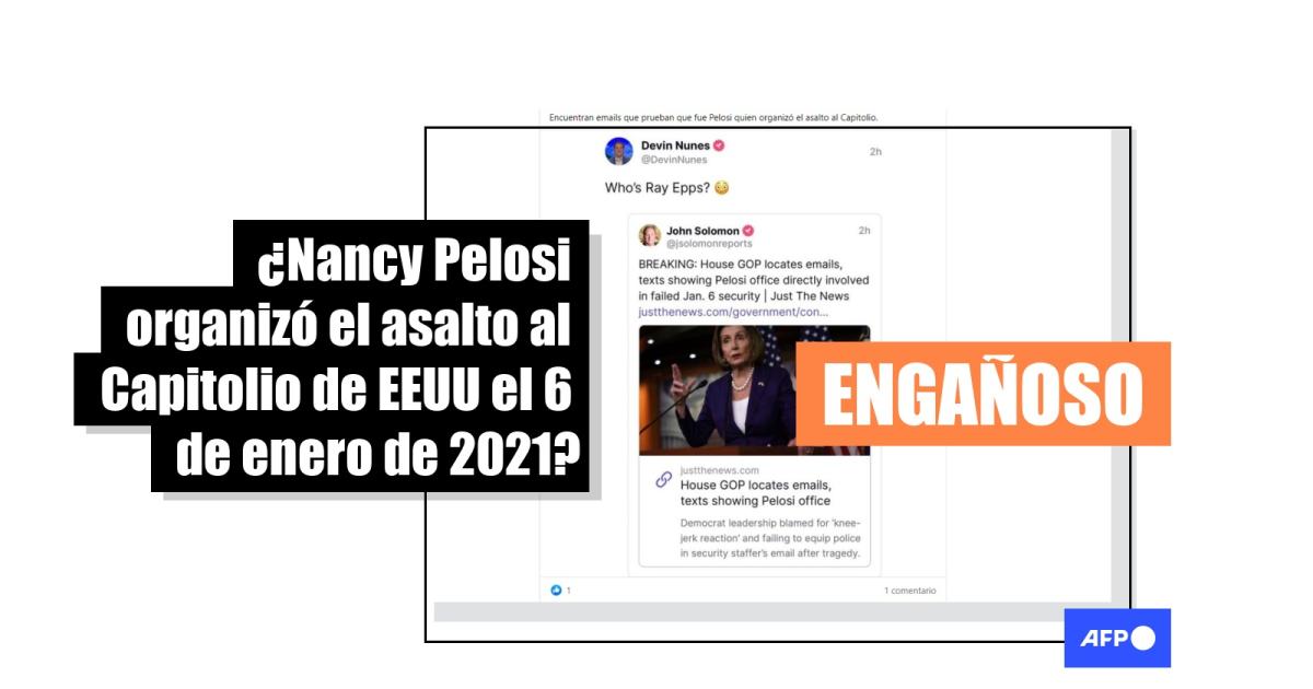La AFP ha verificado anteriormente en inglés piezas de desinformación que aseguraban que el asalto fue una puesta en escena de Pelosi.