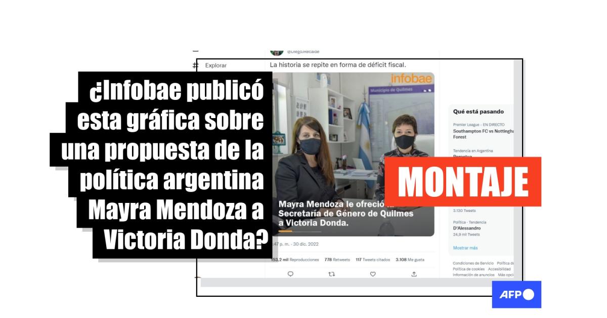 “Mayra Mendoza le ofreció la secretaría de Género de Quilmes a Victoria Donda”, dice el texto de la gráfica difundida más de 1.000 veces en Facebook (1, 2, 3) y Twitter (1, 2, 3).