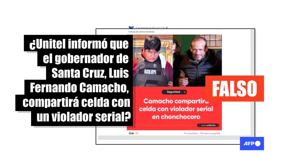 Christopher André, editor digital de Unitel, confirmó a la AFP que Unitel no ha informado que Camacho compartirá celda con otro reo y que la gráfica “es falsa”.