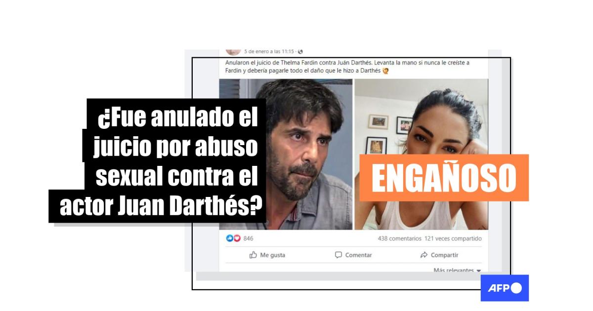 “Anularon el juicio de Thelma Fardin contra Juán Darthés. Levantá la mano si nunca le creíste a Fardin y debería pagarle todo el daño que le hizo a Darthés”, se lee en una de las entradas en Facebook (1, 2) y Twitter (1, 2) que difunden una foto de cada una de las partes involucradas en el juicio.