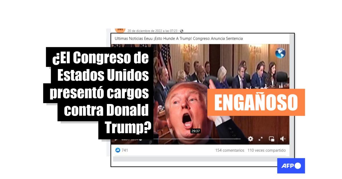 “Se llevó adelante la última audiencia en el Congreso de Estados Unidos para buscar sentenciar al expresidente Donald Trump. Anuncian cargos contra el expresidente y esto por supuesto podría hundirlo y dejarlo fuera de la competencia electoral de cara a las elecciones presidenciales del año 2024. Una situación complicada para Donald Trump; está siendo acusado de golpista, de insurrecto”, asegura la narración del video que tiene más de 13.000 visualizaciones en YouTube y ha sido compartido más de 500 veces en Facebook (1, 2) desde el 20 de diciembre de 2022.