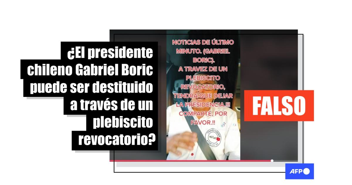 "Noticia de último minuto (Gabriel Boric). A través de un plebiscito revocatorio, tendrá que dejar la presidencia", dice un mensaje sobre un video que se ha viralizado en TikTok. Contenido similar ha circulado en YouTube, Facebook y Twitter.