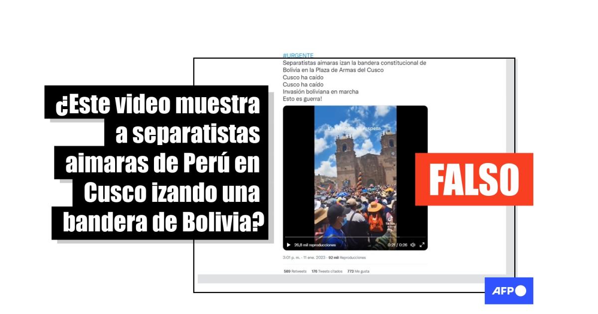 Las publicaciones viralizadas en redes sociales aseguran que el video muestra a separatistas aimaras izando la “bandera constitucional de Bolivia” en la Plaza de Armas de Cusco, en referencia a iniciativas ciudadanas que impulsan la independencia de la región meridional de Perú, entre ellas la conocida como “República del Sur”.