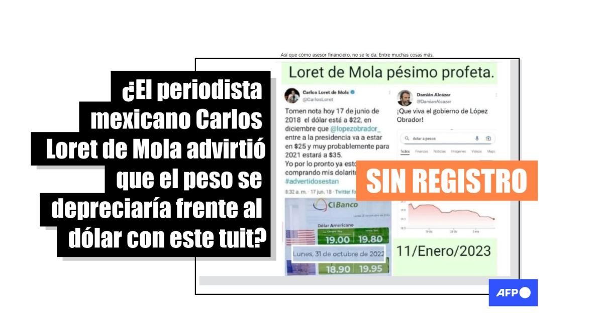 Sin embargo, no existe registro del tuit en el que Loret de Mola supuestamente auguraba una depreciación de la moneda mexicana.
