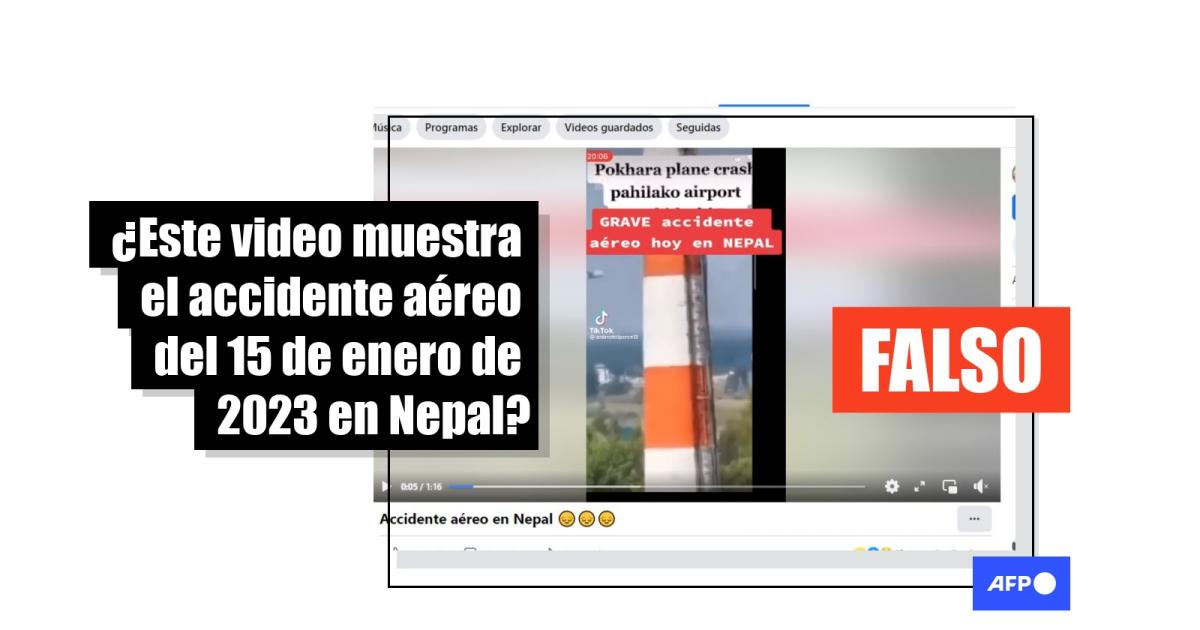 “Imágenes sensibles Un avión de pasajeros que transportaba a 72 personas desde #Katmandú, capital de #Nepal, a la ciudad de #Pokhara, se estrelló poco antes de llegar al aeropuerto, tragedia que no dejó sobrevivientes. Un clip grabado por una de las víctimas y por personas cercanas al siniestro han sido compartidos en redes sociales”, dicen publicaciones en Facebook y TikTok (1, 2).