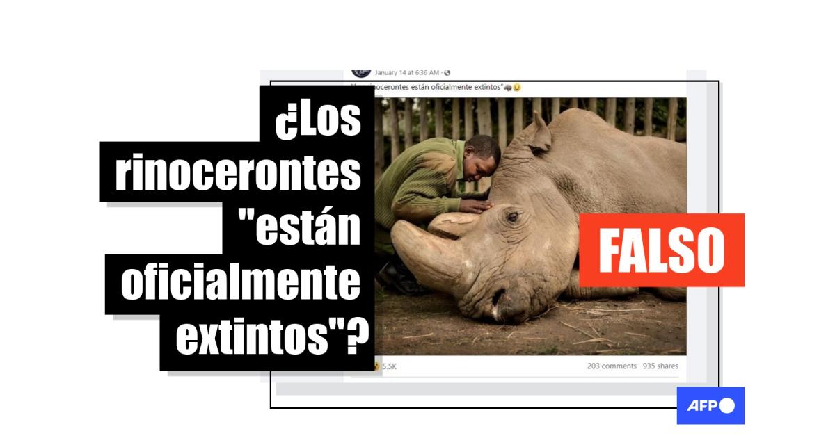 “Hay cinco especies de rinocerontes en la actualidad”, contestó a AFP Factual el 23 de enero de 2023 Àlex Torres Riera, experto en biodiversidad contactado a través de la Universidad de Barcelona, que amplió la información sobre la subespecie del rinoceronte que se ve en la imagen viral: “Quedan dos ejemplares y está extinta en medio salvaje”.