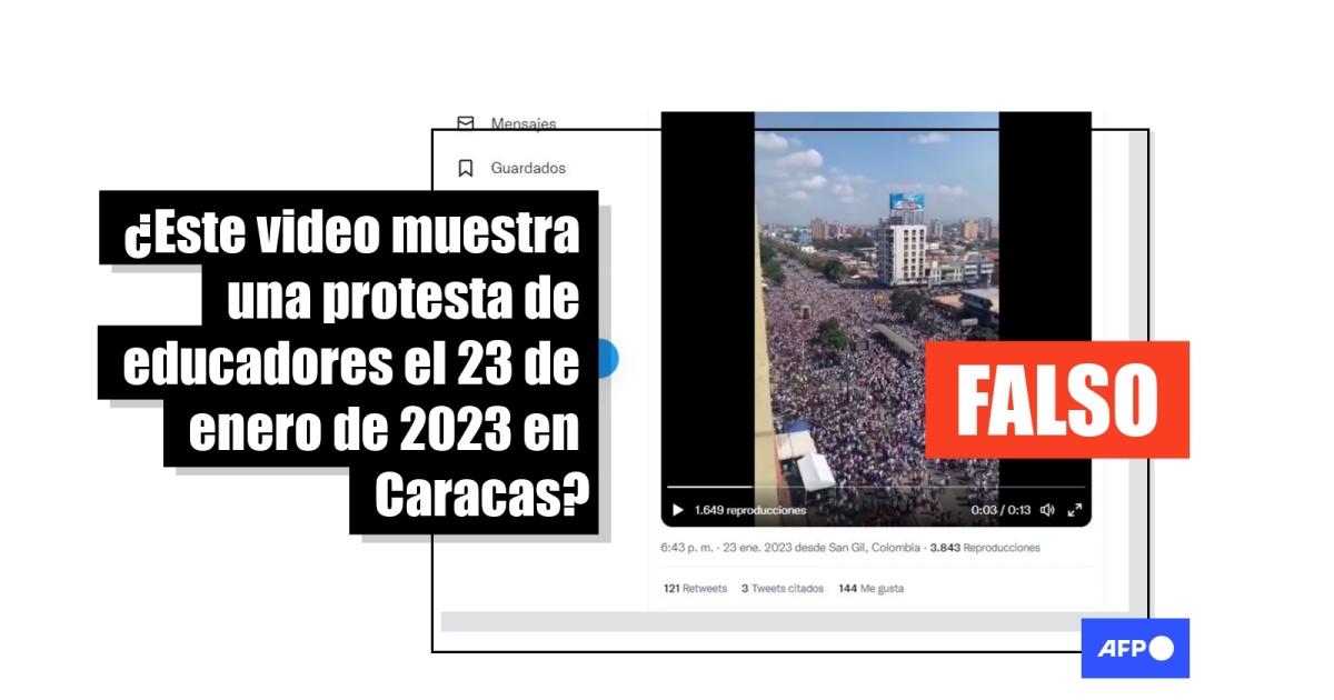 “Hoy 23 de enero 2023, en Caracas, la marcha de la dignidad. Maestros, profesores (activos y jubilados) pensionados, personal de salud, empleados públicos, unidos con un solo propósito: reclamar nuestro derecho a un salario digno”, se lee en una de las publicaciones difundidas más de 500 veces junto con el video en Facebook (1, 2) y Twitter (1, 2).