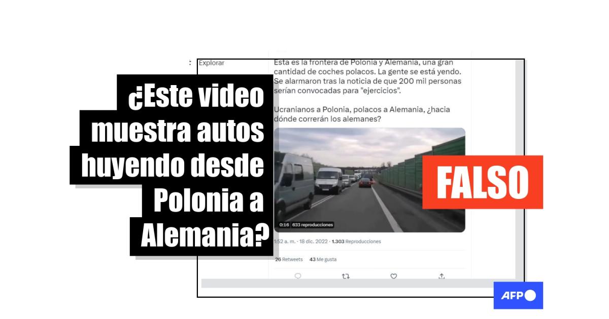 El video muestra una fila de vehículos que supuestamente viajan de Polonia a Alemania. Sin embargo, mediante una búsqueda inversa de imágenes en motores como Yandex, el equipo de verificación de la AFP encontró el video original publicado el 14 de diciembre de 2022 un canal ruso en Telegram con la afirmación de que fue tomado en la carretera polaca E373, cerca de Dorohusk en la frontera con Ucrania.