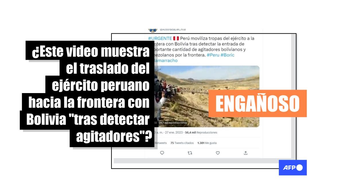 "#URGENTE Perú moviliza tropas del ejército a la frontera con Bolivia tras detectar la entrada de importante cantidad de agitadores bolivianos y venezolanos por la frontera", dice un tuit compartido más de 700 veces con el video. Publicaciones similares circulan en Facebook y TikTok.