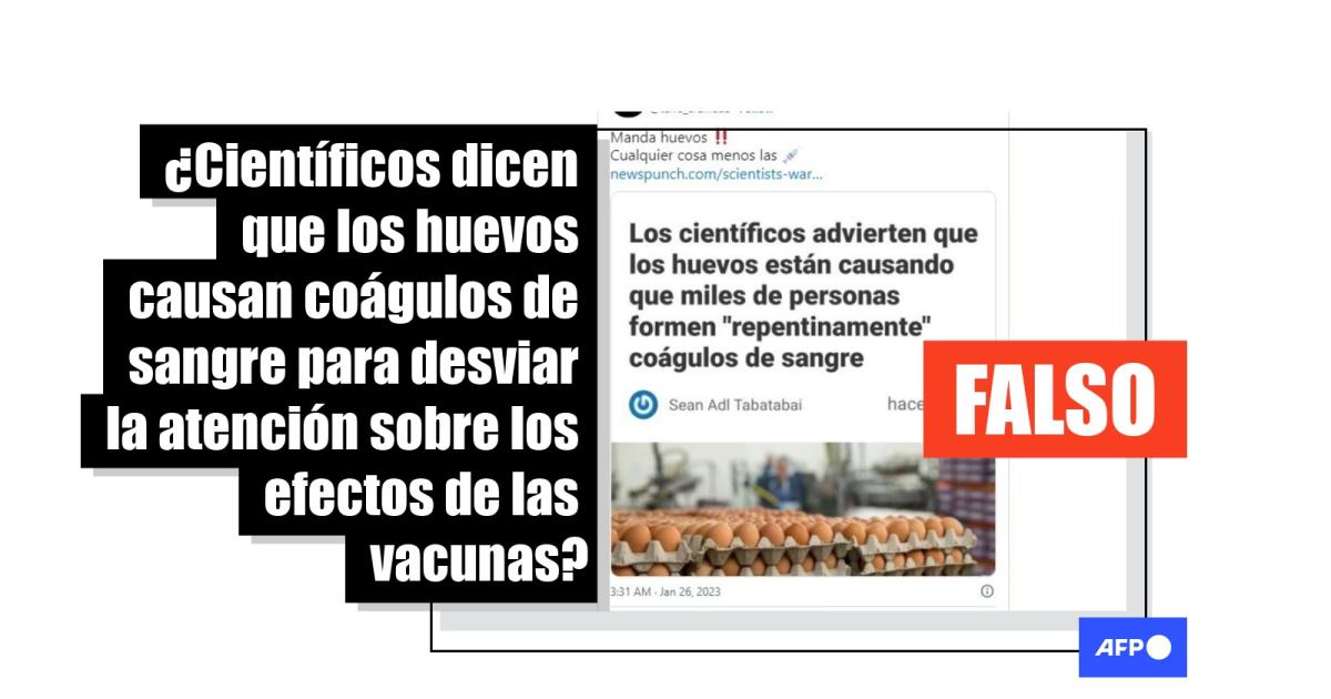 "Científicos advierten que los huevos están provocando que miles de personas formen 'repentinamente' coágulos de sangre", dice el titular del artículo del sitio NewsPunch publicado el 24 de enero de 2023, que ha sido compartido en Twitter (1, 2) y Facebook (1, 2) en unas 800 ocasiones.
