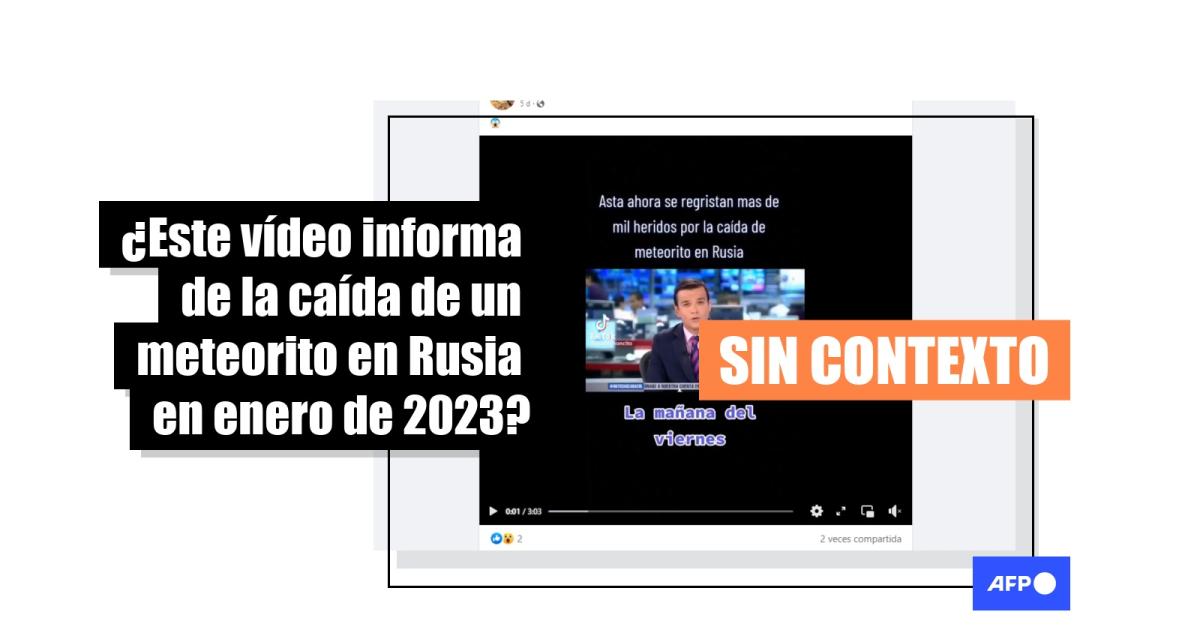 En el vídeo viral, el presentador dice: “El impacto de los fragmentos del meteorito que golpeó en seis ciudades del centro de Rusia deja hasta ahora más de mil personas heridas. Los momentos de pánico y angustia fueron captados por cámaras de aficionados y profesionales que se vieron sorprendidos por ese fenómeno”. Los usuarios en redes lamentan la noticia que se difunde como si se hubiera reportado “la mañana del viernes”, en enero de 2023.